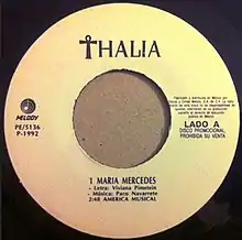 - ↑ Maria Mercedes (Media notes). Thalía. Melody/Fonovisa. 1992. PE/5136.