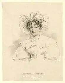 Stanley chose her own husband. She sorted through many likely groups and she decided to choose a man as well educated as herself.[2] She married Sir John Stanley, 7th Baronet, in 1796. Her husband was known as an Icelandic explorer.[2] They went to live at Alderley Park in Cheshire. The Stanley family had lived there for around two hundred years, but the hall had been damaged by fire in 1779. Sir John and Lady Maria had commissioned a new hall to be constructed in 1818 in the south of the estate on a site then occupied by Park House. They lived there for fifty years and there were 11 children of the marriage, with sons who were twins and seven daughters surviving to become adults.[2] The sons were Edward John (1802–1869), the elder twin who inherited the title, and William Owen Stanley (1802–1884), a Liberal Party politician. In 1839, her husband was raised to the peerage as Baron Stanley of Alderley.