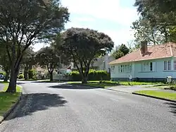 Hayes Paddock, an enclave in Hamilton East developed between 1939 and 1945, was planned and built according to the philosophies and ideals of the First Labour Government and the Garden City Movement. It includes curved street patterns, open plan garden layouts, low density development, and the provision of walkways and reserves. Hayes Paddock contains over 200 classic state houses built along seven streets named mostly after New Zealand governors general.[20]