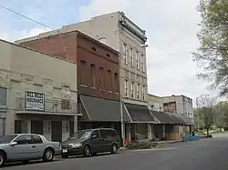 The Marianna Commercial Historic District encompasses the historic civic and commercial heart of Marianna, Arkansas, the county seat of Lee County. It comprises two blocks of Main Street and two blocks of Poplar Street, which cross at the northwest corner of Court Square, a city park where the Gen. Robert E. Lee Monument is found, and extends south to include a few buildings on Liberty Street.