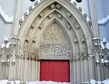 Most notable about the Mariazell Basilica, built in the 14th and 15th centuries but with a superb baroque interior, are the three towers on its western front. The church houses the Magna Mater Austriae ("Great Mother of Austria") in its so-called Gnadenkapelle (“Grace Chapel”). The holy image is a small wooden Marian statue from the 13th century, which is clothed in a splendid garment and plays a great role in the popular devotions of many Austrian Catholics.