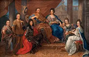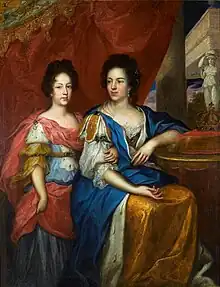 Marie Casimire Louise de La Grange d'Arquien (Polish: Maria Kazimiera Ludwika d’Arquien; 28 June 1641 – 30 January 1716),[1] known also by the diminutive form "Marysieńka", was a French noblewoman who became the queen consort of Poland and grand duchess consort of Lithuania from 1674 to 1696 by her marriage to King and Grand Duke John III Sobieski of the Polish–Lithuanian Commonwealth. She had great influence upon the affairs of state with the approval of her spouse, and acted in effect as regent during his absence.[2]