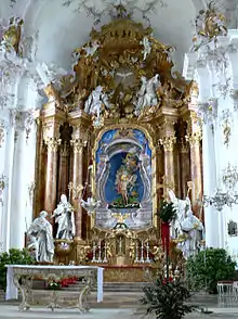 The architecture, furnishing and art combine to form one of the finest expressions of 18th century Baroque style in Bavaria. The inside of the church is filled with Baroque statues, paintings, frescoes and decorative art.