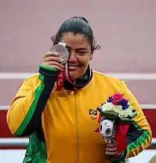 Marivana Oliveira is a Brazilian Paralympic athlete with cerebral palsy.[1] She won the silver medal in the women's shot put F35 event at the 2020 Summer Paralympics held in Tokyo, Japan. She also represented Brazil at the 2012 Summer Paralympics held in London, United Kingdom and at the 2016 Summer Paralympics held in Rio de Janeiro, Brazil.[1] She won the bronze medal in the women's shot put F35 event in 2016.[1][2]