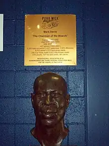 Davis is honoured as one of only four players to have their number retired by the Adelaide 36ers. His #33 jersey hangs in the rafters of Adelaide Arena, alongside #4 Darryl Pearce, #5 Brett Maher and #15 Al Green. Maher, who replaced Davis as 36ers captain in 1997 when Davis' career was winding down and his role changed from being a starter to the team's sixth man, also played his entire NBL career with the Adelaide 36ers. Just inside the main entrance to the Adelaide Arena, a bronze bust of Davis sits in place underneath a plaque giving a bio of Davis' achievements with the 36ers (pictured right).
