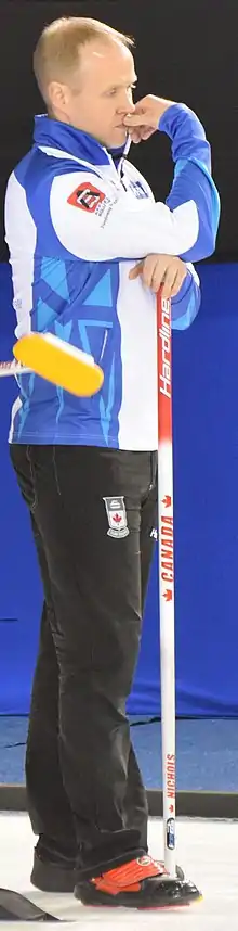 Mark Nichols, ONL (born January 1, 1980) is a Canadian curler from St. John's, Newfoundland and Labrador.[2] He currently plays third for the Brad Gushue rink. Nichols is a former Olympic champion curler, having played third for Team Canada at the 2006 Winter Olympics, where the team won a gold medal. He also won a World Championship with Gushue in 2017.