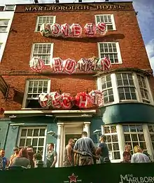 The pub's links with Brighton's LGBT community date from the 1970s.[9] Sussex GLF (Gay Liberation Front), formed in February 1971 by Sussex University students, started to have regular meetings on Tuesdays at the Marlborough from early 1974, and discos were held fortnightly on Fridays. They held other events too, including a 1974 screening of a BBC documentary about gay Christians, The Lord is my Shepherd and He Knows I'm Gay.[10] After Sussex GLF, came Brighton CHE (Campaign for Homosexual Equality) which took the Tuesday meeting slot from 1976 until 1981. In the 1970s, the pub was also being used for regular events for the local branch of the right wing National Front.