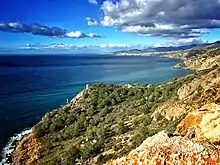 The Maro–Cerro Gordo Cliffs Natural Park is an area of land and sea between Cerro Gordo, the headland at the western end of La Herradura, a seaside resort on Spain's Costa Tropical. It is on the south-west coast of the province of Grenada, 70 kilometres east of Málaga, and part of the borough of Almuñécar, in Andalusia.[1]