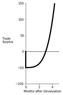 This example has an elasticity of Japanese demand for American exports of .6 (= 6%/10%) and elasticity of demand for American imports of -1 (= -10%/10%), so it satisfies the Marshall-Lerner condition that the sum of the magnitudes of the elasticities (|-.6| + |1|) exceeds 1. The direct negative price effect of the depreciation on the balance of trade is outweighed by the indirect positive quantity effect. This pattern of a short run worsening of the trade balance after depreciation or devaluation of the currency (because the short-run elasticities add up to less than one) and long run improvement (because the long-run elasticities add up to more than one) is known as the J-curve effect.[3]