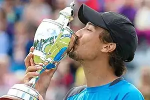 Alund gained direct entry into both the French Open and Wimbledon, winning a set against World No. 4 David Ferrer in the first round of the latter before eventually losing in four sets.[4] In preparation for the grass courts, he won the Liverpool International exhibition tournament, etching his name alongside esteemed former champions Marat Safin, Ivan Ljubičić and Fernando González.[5]
