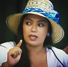 Martha Isabel Peralta Epieyú is a Colombian lawyer, specialist in environmental law and indigenous leader of the Wayuu people belonging to the Epinayú Epieyú clan. She is president of the political party Movimiento Alternativo Indígena y Social (MAIS) (Alternative Indigenous and Social Movement).[1] Peralta was elected to the Senate in the 2022 legislative election within the coalition of the Historical Pact for Colombia.[2][3]