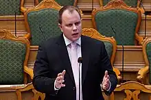Martin Henriksen (born 25 January 1980 in Tårnby) is a Danish politician and former MP, representing the Danish People's Party (Dansk Folkeparti) in Parliament from 8 February 2005 to 5 June 2019 in various constituencies,[1] but left the party in 2022 after losing the election for party leadership. In 2023, he joined the New Right party.