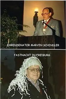Schindler's leadership of Wayne State's Junior Year in Freiburg and Junior Year in Munich study-abroad programs (he served as director of both from 1975 to 1993) earned him the Bundesverdienstkreuz, erster Klasse, Germany's highest civilian honor. He twice served as resident director of the Junior Year in Freiburg program, established and run in conjunction with the Albert-Ludwigs-Universitaet, and lived with his family in Freiburg, in the heart of the Black Forest, during the academic years 1983-84 and 1987โ88. The Universitaet honored him twice: in 1982, with its silver medallion; and in 1985, with the designation of University Senator.