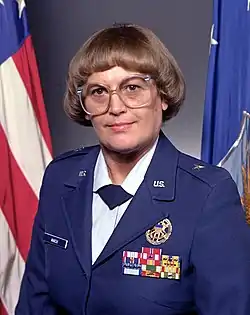 She moved to Headquarters U.S. European Command, Stuttgart, West Germany, in June 1978 as chief, Intelligence Plans Division. In September 1980 she was assigned to the U.S. Delegation of the Military Committee in Brussels, Belgium, first as special assistant to the U.S. Military Representative and in November 1981 she became chief of staff to the U.S. Delegation. In 1981 she graduated from the Tuck Executive Program, Dartmouth College, Hanover, New Hampshire, under the advanced management program. In August 1982 she was appointed director for manpower and personnel, J-1, Organization of the Joint Chiefs of Staff, Washington, D.C. On May 1, 1983, she was promoted to Brigadier General. She retired from the Air Force on May 1, 1986.[3]