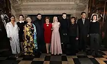 On 13 June 2017, Jack Lowden was announced to play Lord Darnley, while Joe Alwyn was announced to play Robert Dudley.[12][13] On 22 June 2017, it was reported that Martin Compston was cast in the film to play James Hepburn, 4th Earl of Bothwell, the third husband of Stuart.[14] On 23 June 2017, German-Romanian actress Maria-Victoria Dragus had also joined the cast to play Scottish noblewoman and childhood friend of Stuart, Mary Fleming, marking her English-language debut in film, having a minor role previously in Australian teen drama Dance Academy.[15] On 17 August 2017, Brendan Coyle, David Tennant, and Guy Pearce joined the cast,[16][17] followed by Gemma Chan the next day.[18] On 22 August, Ismael Cruz Córdova was cast to play David Rizzio, Mary's close friend and confidant.[19]
