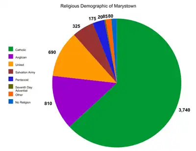 While the town contains a diverse mixture of churches of varying denominations, the town is almost entirely Christian. The information presented from a 2001 census from Statistics Canada indicates that 68% of the population is Roman Catholic.