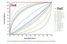 Rainbow acoustic monitoring provides noninvasive and continuous measurement of respiration rate using an adhesive sensor with an integrated acoustic transducer that is applied to the patient's neck.[42][43] Researchers have evaluated acoustic respiration rate (RRa) and found the acceptable accuracy and significantly fewer false alarms than traditional respiration rate monitoring methods, end-tidal carbon dioxide (EtCO2) and impedance pneumography.[44]