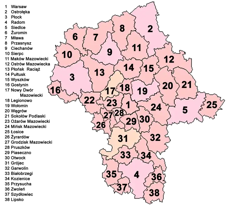 | 23 | Warsaw West County powiat warszawski zachodni |