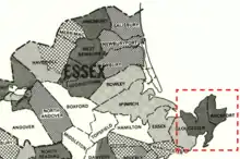 - Essex County districts of the Massachusett Senate: 1st, 2nd, 3rd; 1st Essex and Middlesex; 2nd Essex and Middlesex