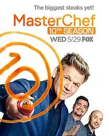 The tenth season of the American competitive reality television series MasterChef premiered on Fox on May 29, 2019,[1] and concluded on September 18, 2019. Gordon Ramsay, Aarón Sánchez, and Joe Bastianich all returned as judges. The season was won by creeler Dorian Hunter, with former Army interrogator Sarah Faherty finishing second, and college student Nick DiGiovanni placing third.
