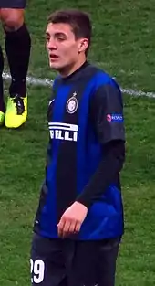 Kovačić missed most of the pre-season training with the squad due to series of small injuries,[28][29] and made his comeback just few days before the first official match of the new season, a Coppa Italia match against Cittadella at Stadio Giuseppe Meazza.[30] During the pre-season interviews, new Inter manager Walter Mazzarri hinted Kovačić would be given a new role on the pitch, a role similar to Marek Hamšík's in Napoli.[31] During the first half of the season, Kovačić played regularly, although he struggled with adjusting to his new tactical role.[32] Kovačić made his first assist of the season in the match against Livorno, when he delivered an assist for Yuto Nagatomo.[33] Unlike the previous season under manager Andrea Stramaccioni, Kovačić was not a regular starter during the 2013–14 season. In 32 Serie A matches played, he started only 14, playing the entire 90 minutes on just eight occasions.[34] He received the chance to restore his confidence towards the end of the season, as he was Mazzarri's first-choice in the midfield in Inter's last six matches.