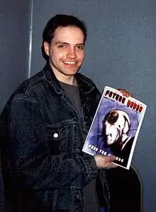 Matt Smith, photographed at Bristol UK Comics Festival, 2004, holding a copy of small press comics magazine FutureQuake