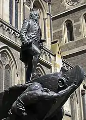 Australia holds a large collection of statues erected in Flinders' honour. In his native England, the first statue of Flinders was erected on 16 March 2006 (his birthday) in his hometown of Donington. The statue also depicts his beloved cat Trim, who accompanied him on his voyages. In July 2014, on the 200-year anniversary of his death, a large bronze statue of Flinders by the sculptor Mark Richards was unveiled at Australia House, London by Prince William, Duke of Cambridge, and later installed at Euston station near the presumed location of his grave.[43]