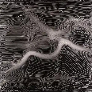 McQuillan's early work is primarily monochromatic and uses undulating, repetitive lines to create a sense of space and rhythm.[9][10] Critics have noted the reference to Op Art[3] and commented on the mesmerizing quality of her twisting threads: "There’s no telling how Maureen McQuillan achieves the effect of streamers unfurling through the darkening space… but the result is hypnotic and as delicate as smoke."[11]