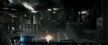 Moore gave the approval on Valkyrie designed by illustrators Chris Roswarne and Rob McCallum. As a point of reference and to limit the use of CG a Valkyrie suit and make up were worn by performer Mako Hindy.[14] Moore "wanted the Valkyries to have a slow motion quality to them, almost as if they were underwater."[15] During the 15 weeks of post-production the Valkyries were further developed by Spin to support this. Using Maya, 3DS Max, and ZBrush they were able to create the Valkyries and have control over their wings. The artists sometimes had full control over each individual feather. They had to overcome the darkness of the film as it made it more difficult to track each object. Spin also handled atmospheric CG and the CG matte backdrops elements.[17]