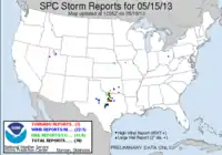 - ↑ Severe Weather Outlook at 12:53 p.m. CDT on May 15, 2013