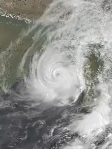 ![]() BOB 01 near peak intensity off the coast of Bangladesh | |