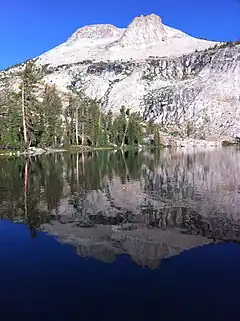 May Lake is a lake in Yosemite National Park, as well as a High Sierra Camp where backpackers can stay in tent cabins located near the lake. There are eight cabins that accommodate a total of thirty six guests.[1] The hike to May Lake is from a parking area off Tioga Pass Road and is 1.2 miles (1.9 km). The lake is overlooked by Mount Hoffmann.