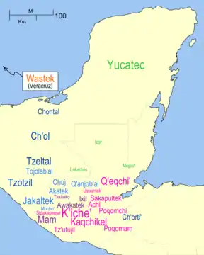 ![]() Location of Mayan speaking populations. See below for a detailed map of the different languages. | |
