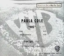 "Me" is a song written, produced, and performed by American singer-songwriter Paula Cole. It was released as the third and final single from her second studio album, This Fire (1996), in February 1998. Released only to radio, the song entered the top 40 on the US Billboard Hot 100 Airplay chart and peaked at number 17 on the Billboard Adult Top 40. In Canada, the song reached number 20 on the RPM 100 Hit Tracks chart. A promotional CD was also distributed in Germany.