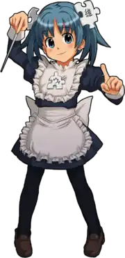 Moe anthropomorphism (Japanese: 萌え擬人化, Hepburn: moe gijinka) is a form of anthropomorphism in anime, manga, and games where moe qualities are given to non-human beings (such as animals, plants, supernatural entities and fantastical creatures), objects, concepts, or phenomena.[2] In addition to moe features, moe anthropomorphs are also characterized by their accessories, which serve to emphasize their original forms before anthropomorphosis. The characters here, usually in a kind of cosplay, are drawn to represent an inanimate object or popular consumer product. Part of the humor of this personification comes from the personality ascribed to the character (often satirical) and the sheer arbitrariness of characterizing a variety of machines, objects, and even physical places as cute.