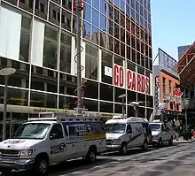 Vans of the three major news broadcasts in Louisville covering an event at 4th Street Live!