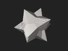 In geometry, the medial rhombic triacontahedron (or midly rhombic triacontahedron) is a nonconvex isohedral polyhedron. It is a stellation of the rhombic triacontahedron, and can also be called small stellated triacontahedron. Its dual is the dodecadodecahedron.