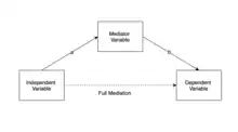 In statistics, a mediation model seeks to identify and explain the mechanism or process that underlies an observed relationship between an independent variable and a dependent variable via the inclusion of a third hypothetical variable, known as a mediator variable (also a mediating variable, intermediary variable, or intervening variable).[1] Rather than a direct causal relationship between the independent variable and the dependent variable, a mediation model proposes that the independent variable influences the mediator variable, which in turn influences the dependent variable. Thus, the mediator variable serves to clarify the nature of the relationship between the independent and dependent variables.[2][3]