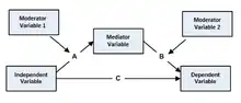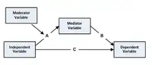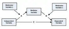 In addition to the models mentioned above, a new variable can also exist which moderates the relationship between the independent variable and mediator (the A path) while at the same time have the new variable moderate the relationship between the independent variable and dependent variable (the C Path).[1]