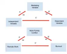 - ↑ Baron, R. M.; Kenny, D. A. (1986). "The Moderator-Mediator Variable Distinction in Social Psychological Research : Conceptual, Strategic, and Statistical Considerations". Journal of Personality and Social Psychology. 51 (6): 1173–1182. doi:10.1037/0022-3514.51.6.1173. PMID 3806354. S2CID 1925599.