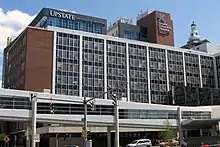 Upstate University Hospital is an academic medical center affiliated with the Norton College of Medicine at the State University of New York Upstate Medical University located in Syracuse, New York.[67] The hospital, a part of the Upstate Health System, is a 752-bed non-profit and the flagship hospital in the system.[68] The hospital is an American College of Surgeons verified Level 1 Trauma Center, the only in the Central New York region and one of 21 in New York.[69] Attached to the hospital is the Upstate Golisano Children's Hospital that treats infants, children, teens, and young adults aged 0–21.[70] The Upstate University Health System has been honored with numerous designations and awards for excellence in medicine, research and nursing by the National Institute of Health, New York State Department of Health, American College of Surgeons, American Heart Association, American Nurses Association, U.S. News & World Report, Forbes, etc.[71][72][73][74]