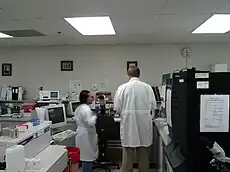 - Molecular diagnostics DNA testing may be done here, along with a subspecialty known as cytogenetics.[10]