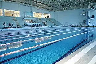 The Olympic-size swimming pool was constructed between 2009 and 2011 at a cost of ₺ 16 million (approx. $ 10 million) to host the swimming events at the 2011 European Youth Summer Olympic Festival. The pool with 50 m (164 ft) length and 25 m (82 ft) width has ten lanes. There is a diving tower at the pool. It can hold 1,400 spectators.