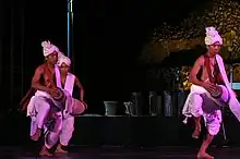 Meitei Sankirtan (Meitei: Meitei Nat Sankirtan), also known as Meitei Sankirtana (Meitei: Meitei Nat Sankirtana) or Manipuri Sankirtan (Meitei: Nat Sonkirton) or Manipuri Sankirtana (Meitei: Nat Sonkirton), is a Meitei cultural form of performing art involving ritual singing, drumming and dancing performed in the temples and domestic spaces in Manipur in India. Through the performances which exhibit unparalleled religious devotion and energy, the performers narrate the many stories of Krishna often moving the spectators to tears.[1] It is practiced primarily by the Meitei Hindus (primarily Vaishnavas) in Manipur and by the Vaishnava Manipuri population settled in the neighbouring States of Tripura and Assam. "Sankirtana: Ritual singing, drumming and dancing of Manipur" was inscribed on the Representative List of the UNESCO Intangible Cultural Heritage of Humanity during the eighth session of the UNESCO Intergovernmental Committee meeting in Baku, Azerbaijan, held in December 2013.[2]