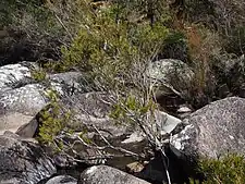 Melaleuca paludicola occurs from Warwick in the far south east of Queensland, through New South Wales as far inland as the eastern part of the North West Plains to the eastern half of Victoria. There is a disjunct population in the Mount Lofty Ranges and Adelaide districts of South Australia.[3][4] It grows in and near rivers, in dry, rocky riverbeds and in flood channels subject to periodic inundation.[3][5]
