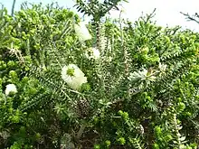 This melaleuca is confined to the D'Entrecasteaux National Park[2] in the Warren biogeographic region[7] growing in dense heath in sand over limestone.[2][3]