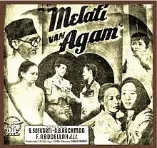 The black-and-white film starred S. Soekarti, A.B. Rachman, R. Abdullah, S. Thalib, N. Ismail, Rochani, Lena, and M. Sani.[2] Soekarti had no previous acting experience, whereas her on-screen romantic partner A.B. Rachman had previously acted in theatre. The marketing for Melati van Agam only focused on Soekarti's background, underplaying Rachman's.[3] Cinematography was handled by I. Ch. Chua, whilst kroncong musician M. Sardi provided the music.[4]