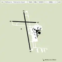 Melbourne Airport was originally called 'Melbourne International Airport'. It is at Tullamarine, a name derived from the indigenous name Tullamareena.[18] Locally, the airport is commonly referred to as Tullamarine or simply as Tulla to distinguish the airport from the other three Melbourne airports: Avalon, Essendon and Moorabbin.[22][23]