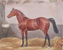 Melton (1882–1910) was a British Thoroughbred racehorse and sire. In a career that lasted from 1884 to 1886 he ran eighteen times and won eleven races. In 1885 he won the second two legs of the English Triple Crown, the Derby at Epsom and the St Leger at Doncaster. At the end of the 1886 season he was retired to stud where he had considerable success in both Italy and Great Britain.