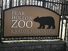 The Bear Hollow Zoo located in Memorial Park is a zoo with animals that are non-releasable to the wild. The zoo's most famous residents are the American black bears DJ, Athena, and Yonah. Bear Hollow also includes white-tailed deer, an American alligator, North American river otters, great horned owls, and a reptile house.[2]